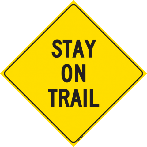 12 x 12 x .050 Polyflex Sign - "STAY On Trail" text only, (Diamond Shape), Yel/Blk, Semi-Ref