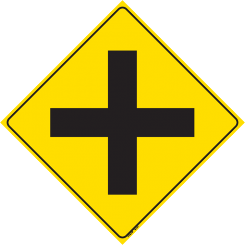 12 x 12 x .050 Polyflex Sign - "4-WAY Intersection (Plus Sign)" graphic only, (Diamond shape), Yel/Blk, Semi-Ref