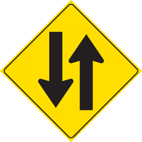 12 x 12 x .050 Polyflex Sign - "TWO-WAY Traffic" w/ Up & Down Arrows graphic only (Diamond shape), Yel/Blk, Semi-Ref