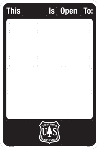 12 x 18 x .080 Alum. Sign - Travel Mgmt Base "This __ is Open To:" with empty decal zones, USFS Logo,Wht/Blk, NREF