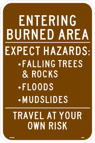 90-89312 x 18 x .080 Alum. Sign - "Entering Burned Area - Expect Hazards...", Wht/Brn, EG