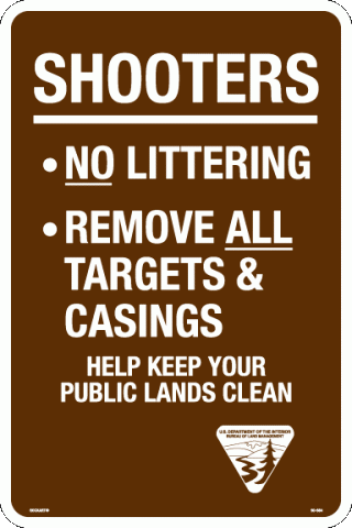 12 X 18 X .07 PolyFlex Sign - "Shooters - No Littering - Remove All Targets And Casings", BLM Logo, Wht/Brn, Non-Reflective