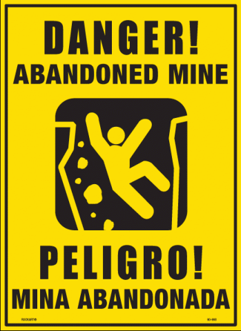 8 X 11 X .032 Alum. Sign - "Danger - Abandoned Mine", English/Spanish, Yel/Blk, Non-Reflective