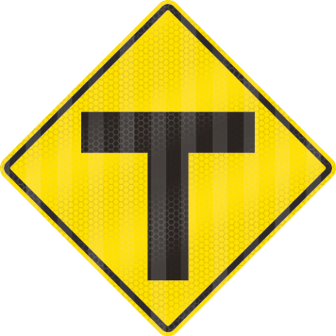 Alum. Sign - "Intersection warning: T-Intersection" graphic only (Diamond shape), Yel/Blk, HIP