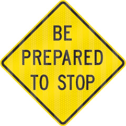 91-525-SizeAlum. Sign - "BE PREPARED TO STOP" text only (Diamond shape), Yel/Blk, HIPEquivalent 3rd-Party Identifiers:W3-4
