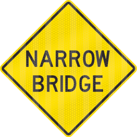 91-533-SizeAlum. Sign - "NARROW BRIDGE" text only (Diamond shape), Yel/Blk, HIPEquivalent 3rd-Party Identifiers:W5-2