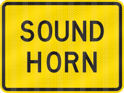 91-536-DimsAlum. Sign - "SOUND HORN" text only, Yel/Blk, HIP