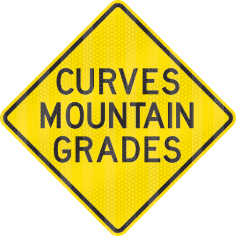 91-550-SizeAlum. Sign - "CURVES MOUNTAIN GRADES" text only (Diamond shape), Yel/Blk, HIPEquivalent 3rd-Party Identifiers:W7-10