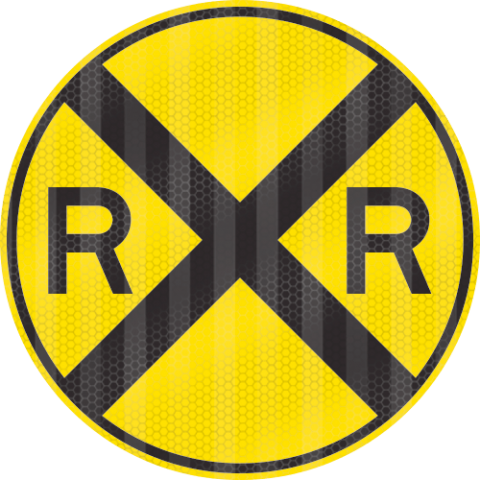 Alum. Sign - "Highway Rail Road Grade Crossing Advanced Warning" (Round), Yel/Blk, HIP
