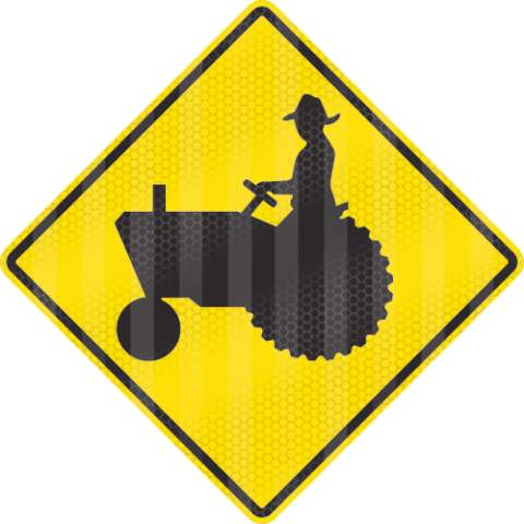 Alum. Sign - "Heavy Farm Machinery Crossing/Traffic, (graphic only, Diamond shape)", Yel/Blk, HIP