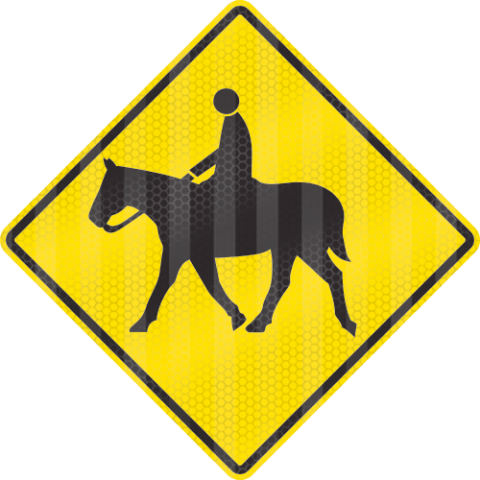Alum. Sign - "Equestrian Crossing / Horseback - (graphic only, Diamond shape)", Yel/Blk, HIP