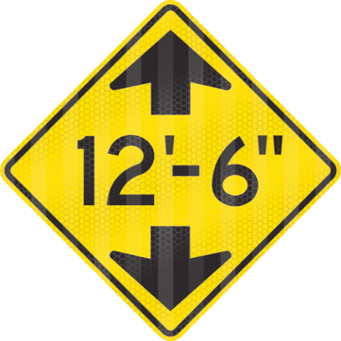 Alum. Sign - "Low Clearance __ ft -__ in. (w/ Height in feet & inches, w/ arrows above & below, Diamond shape)", Yel/Blk, HIP