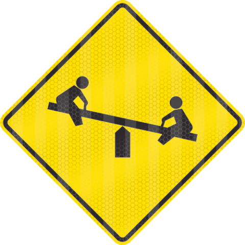 Alum. Sign - "Playground / Children at Play (graphic only, Diamond shape)", Yel/Blk, HIP