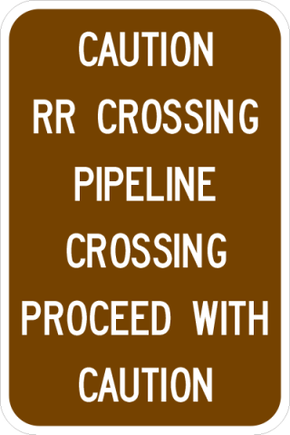 12 x 18 x .080 Alum. Sign - "Caution RR Crossing Pipeline Crossing Proceed With Caution", Wht/Brn, HIP