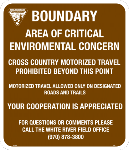 18 X 21 X .08 Alum. Sign - "Boundary / Area Of Critical Environmental Concern", BLM Logo, Wht/Brn, Reflective