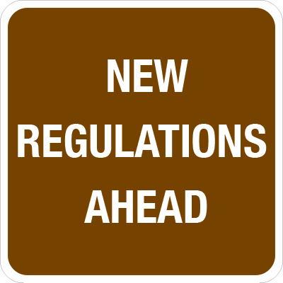 92-108118 x 18 x .080 Alum. Sign - "New Regulations Ahead", Wht/Brn, EG