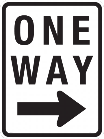 92-116618 x 24 X .080 Alum. Sign - R6-2R "One Way ----->", Wht/Blk, HIP