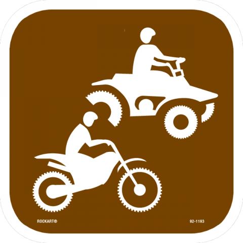 92-11938 x 8 x .050 PolyFlex Sign - "ATV & Dirt Bike Symbols", Wht/Brn, NREF