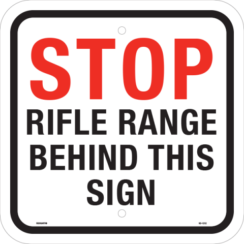 92-121212 x 12 x .080 Alum. Sign - "STOP - Rifle Range Behind This Sign", Wht/Red/Blk, EG