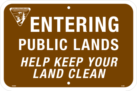 18 x 12 x .080 Alum. Sign - "ENTERING Public Lands / Help Keep Your Land Clean" w/ BLM Logo, Wht/Brn, EG