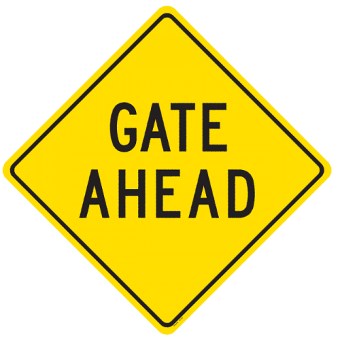 92-132930 x 30 x .080 Alum. Sign - "Gate Ahead", Yel/Blk, HIP, (MUTCD - FW3-5A)Equivalent 3rd-Party Identifiers:FW3-5a