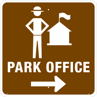 30 x 30 x .080 Alum. Sign - "PARK OFFICE -->", w/ right arrow (symbol+text), Wht/Brn, HIP