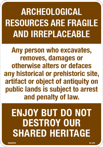 7 x 10 x .050 PolyFlex Sign - "Archeological Resources Are Fragile And Irreplaceable...Enjoy But Do Not Destroy Our Shared Heritage", Wht/Brn, NREF
