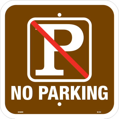 92-141412 x 12 x .080 Alum. Sign - "No Parking" (Graphic And Text), Wht/Brn/Red, EG