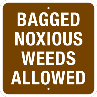 92-142518 x 18 x .080 Alum. Sign - "Bagged Noxious Weeds Allowed", Wht/Brn, EG