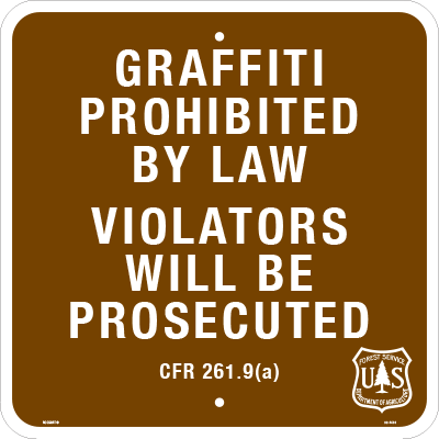18 x 18 x .080 Alum. Sign - "Graffiti Prohibited By Law, Violators Will Be Prosecuted....CFR261.9a", w/ USFS Logo, Wht/Brn, EG, w/Anti-Graffiti Overlam