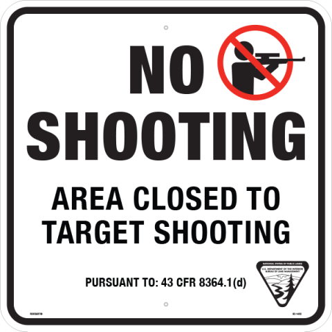 18 x 18 x .110 PolyFlex Sign - "No Shooting / Area Closed To Target Shooting / 43 CFR 8364.1 (D) , BLM Logo, Wht/Blk/Red, NREF