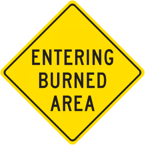 30 x 30 x .080 Alum. Sign - "Entering Burned Area" text only (Diamond shape), Yel/Blk, HIP