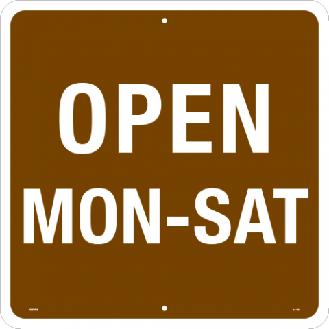 92-149824 x 24 x .080 Alum. Sign - "Open Mon - Sat", Wht/Brn, HIP