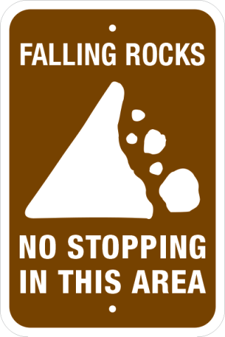 92-156812 x 18 x .080 Alum. Sign - "FALLING ROCKS / No Stopping In This Area", Wht/Brn, EG