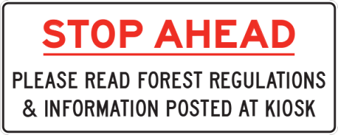 60 x 24 x .125 Alum. Sign - "STOP AHEAD - Please Read Forest Regulation & Information Posted At Kiosk", Wht/Blk/Red, HIP