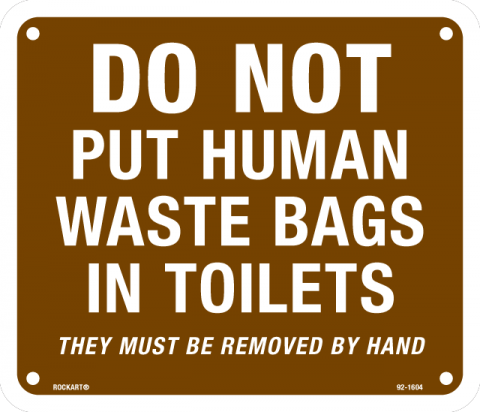 92-16047 x 6 x .050 PolyFlex Sign - "DO NOT Put Human Waste Bags In Toilets", Wht/ Brn, NREF