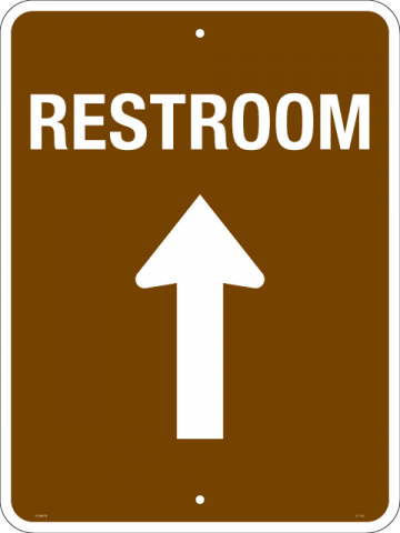 92-161018 x 24 x .080 Alum. Sign - "RESTROOM" w/ Up Arrow, Wht/Brn, EG