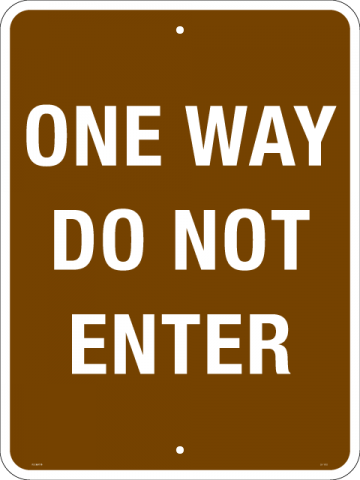 18 x 24 x .080 Alum. Sign - "ONE Way - Do Not Enter", Wht/Brn, EG