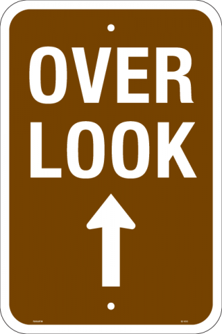 92-161312 x 18 x .080 Alum. Sign - "OVERLOOK" w/ Up Arrow, Wht/Brn, EG