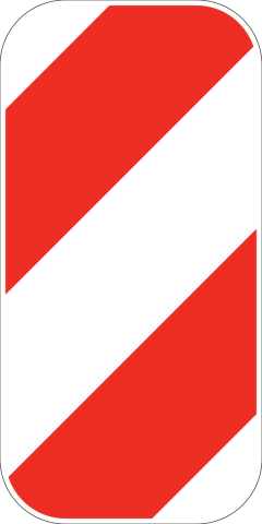 92-16716 x 12 x .080 Alum. Barricade Marker, Right to Left, 3" stripes, Red/Wht, EG