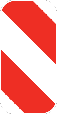 92-16756 x 12 x .080 Alum. Barricade Marker, Left to Right, 3" stripes, Red/Wht, HIP