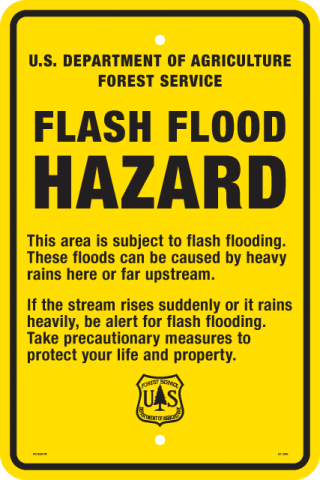 12 x 18 x .110 PolyFlex. Sign - "Flash Flood Hazard... This area is subject to flash flooding", w/ USFS Logo, Yel/Blk, NREF