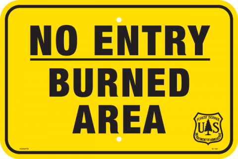 92-168118 x 12 x .080 Alum. Sign - "No Entry / Burned Area", w/ USFS Logo, Yel/Blk, HIP