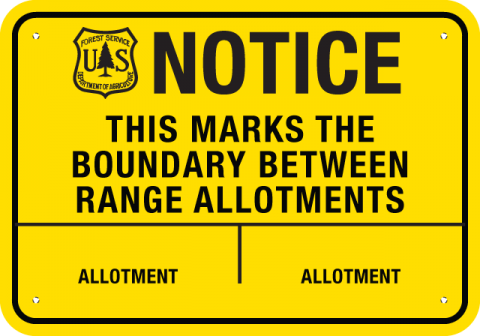 10 x 7 x .032 Alum. Sign - "Notice - This marks the boundary between range allotments", USFS Logo, Yel/Blk, NREF, 22-4