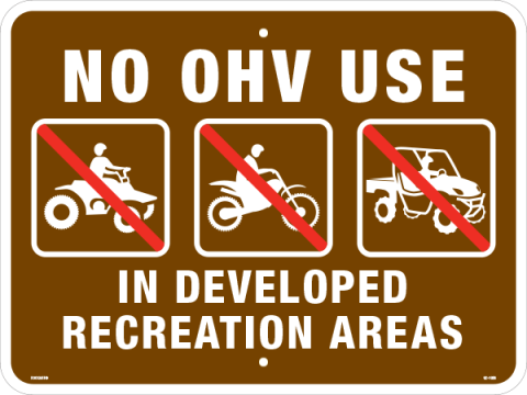 24 x 18 x .080 Alum. Sign - "No OHV Use In Developed Recreation Areas", Wht/Brn/Red, EG