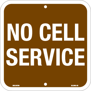 12 x 12 x .080 Alum. Sign - "No Cell Service" (text only), Wht/Brn, EG