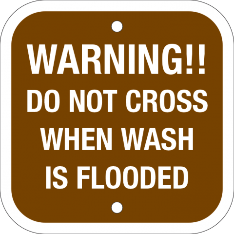 92-21328 x 8 x .080 Alum. Sign - "Warning!! Do Not Cross When Wash Is Flooded", Wht/Brn, HIP