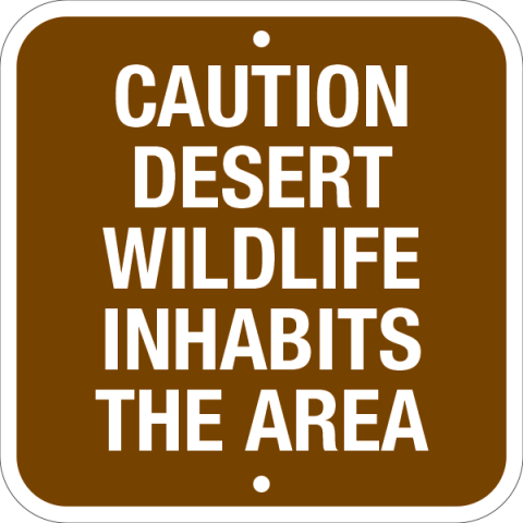 92-225212 x 12 x .080 Alum. Sign - "Caution Desert Wildlife Inhabits The Area", Wht/Brn, EG