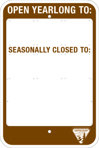 12 x 18 x .080 Alum. Sign Travel Management Base - "Open Yearlong To:...Seasonally Closed To:", W/ BLM Logo, Wht/Brn, NREF