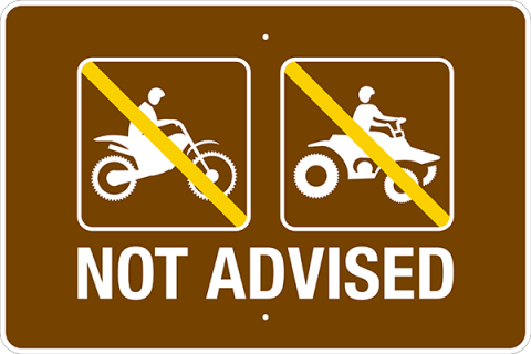 36 x 24 x .080 Alum. Sign - "NOT ADVISED", w/ cautionary Dirt Bike & ATV Symbols, Wht/Brn/Yel, EG